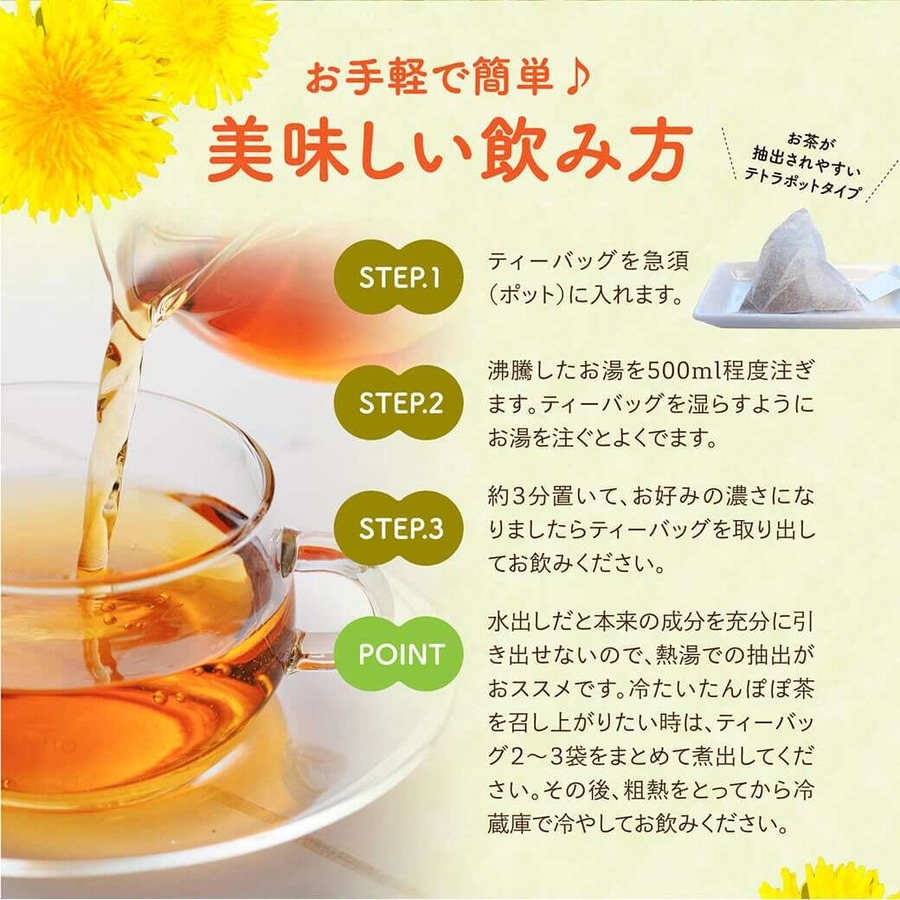 ティーバッグタイプだから、忙しい毎日でも簡単・手軽にたんぽぽ茶のやさしい味わいをお楽しみいただけます。