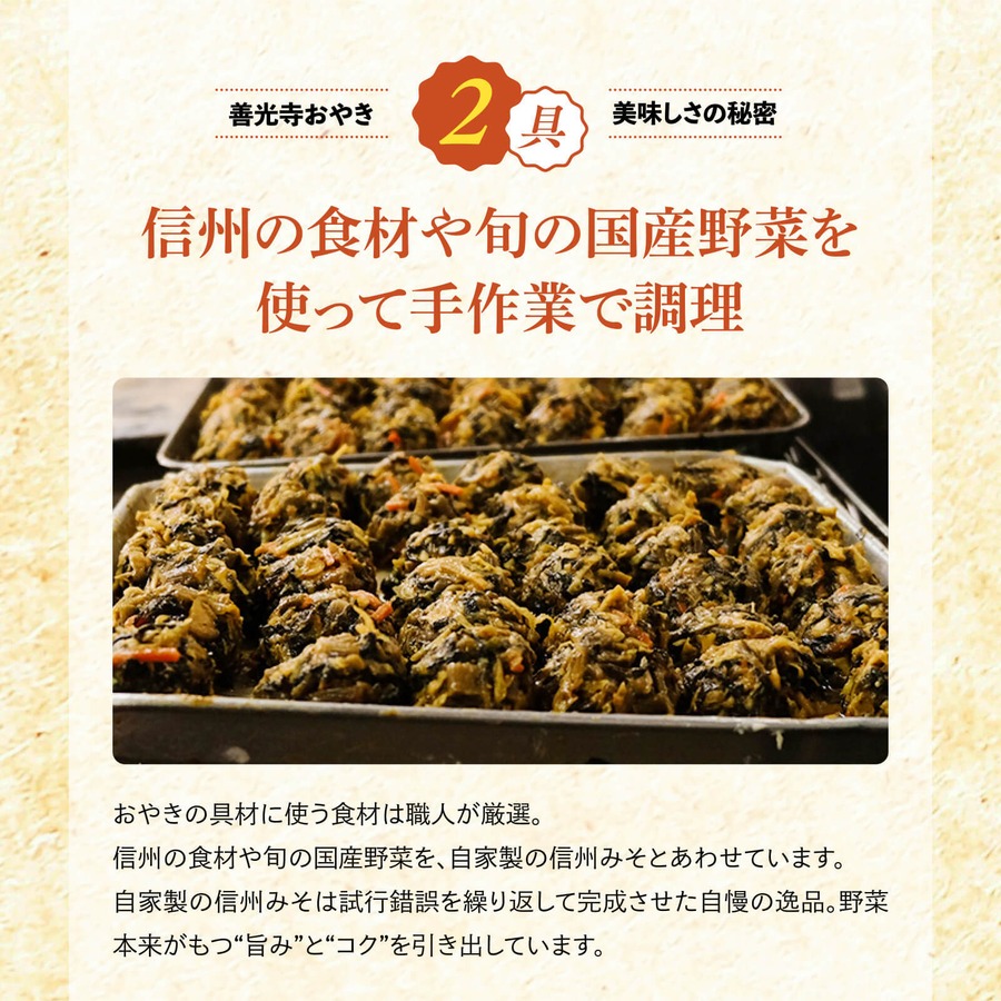 ひとつひとつ丁寧に包まれた善光寺おやきには、信州の自然が育んだ素材と、職人たちのまごころが詰まっています。