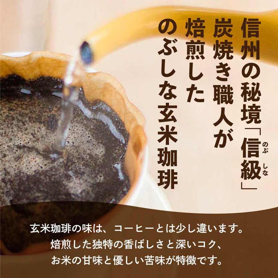 それが、信州の山あいで育ったお米を炭焼き&遠赤外線で丁寧に焙煎した、「のぶしな玄米珈琲」です。